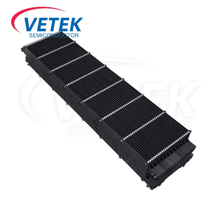 بصفتها حاملة رقائق السيليكون العادية التي تنتجها عملية الطلاء ، يحتوي قارب الجرافيت على العديد من رقائق القوارب مع فترات زمنية معينة في الهيكل ، وهناك مساحة ضيقة للغاية بين رقائق القارب المجاورة ، ويوضع رقائق السيليكون على جانبي الباب الفارغ.